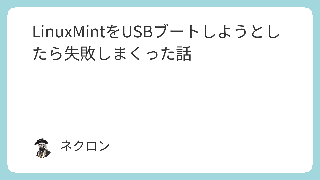 なので私のなかでLinux系OSへの関心が高まってて、その一環として「LinuxMintをUSBブートして遊ぼう」となりました。